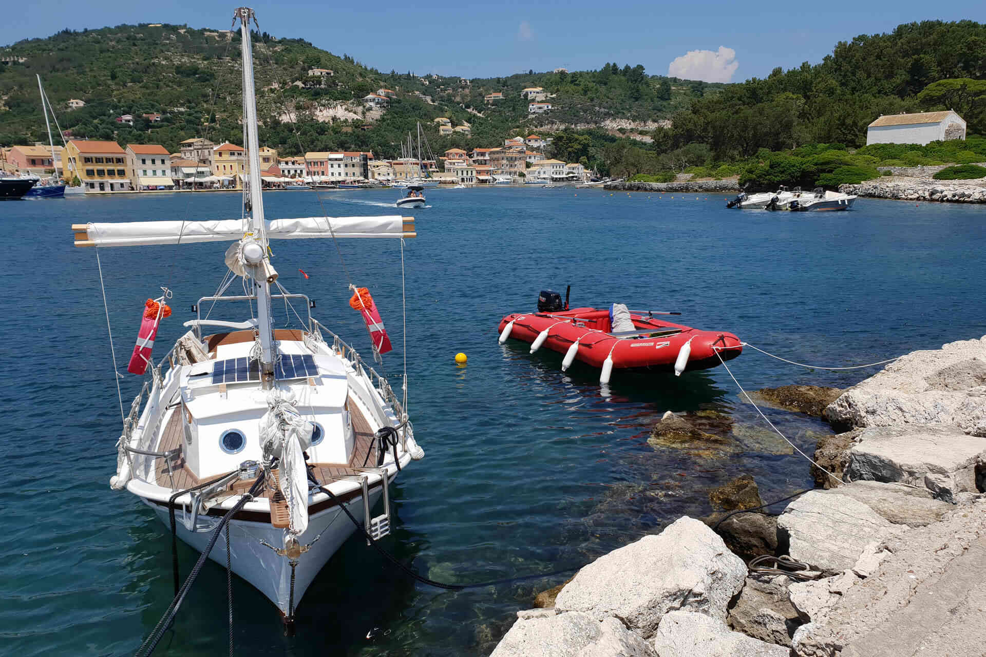 The robust transom can mount environmentally-conscious electric outboards as well as gas outboards up to 20 hp. The transom scupper drains off splashed water while under way and can be closed when the boat is sitting still to prevent any water ingress.