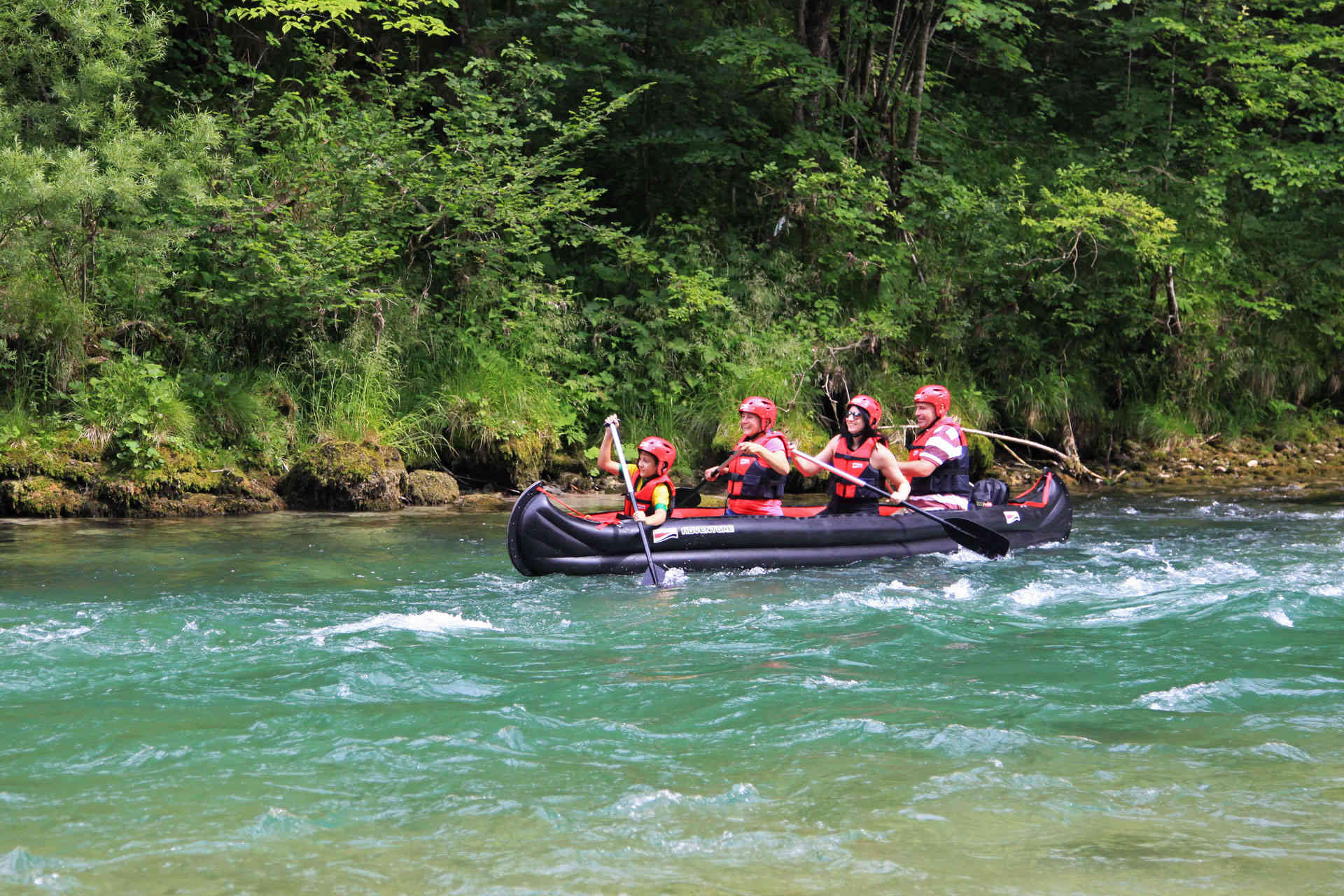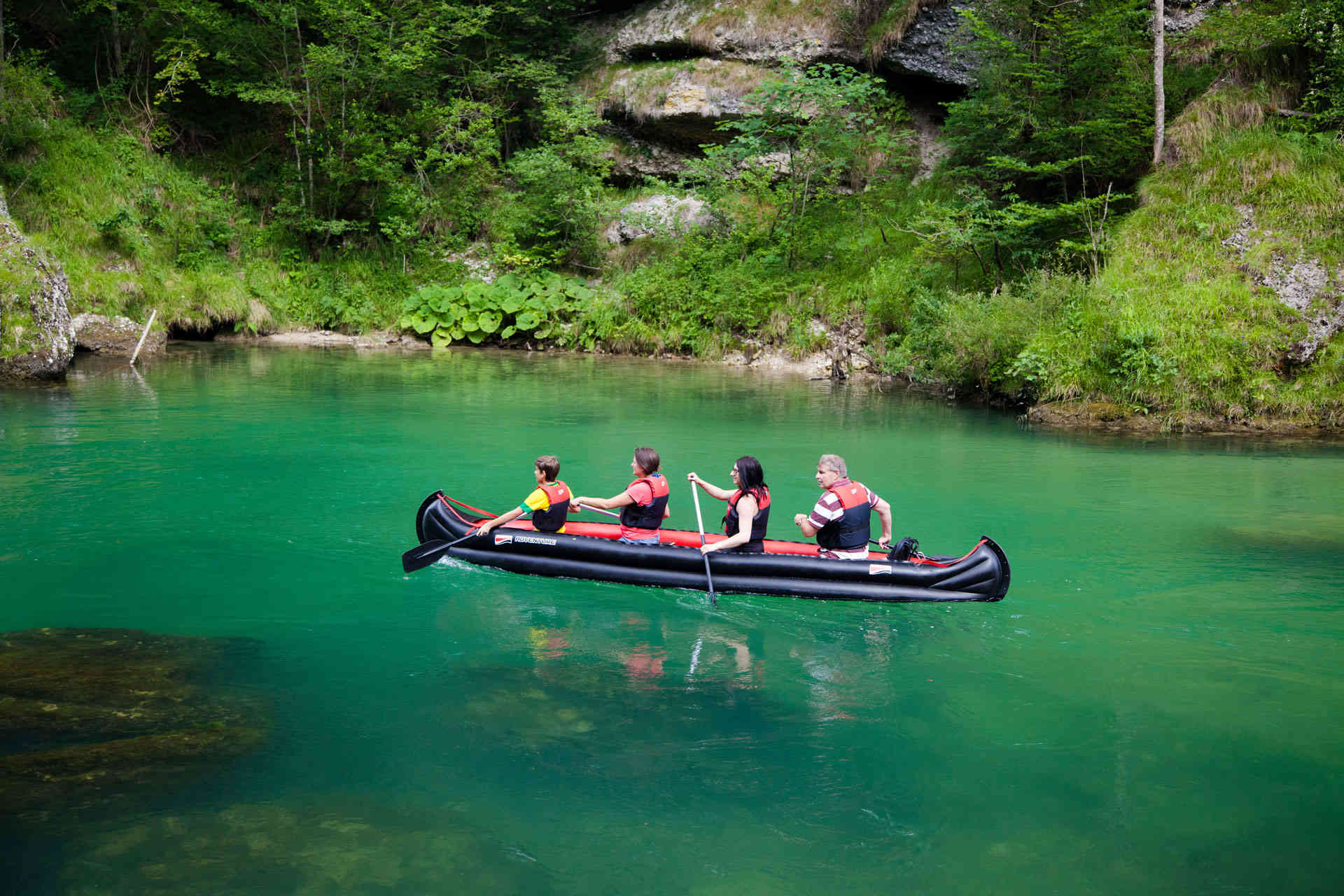 The high gunwales are perfect for keeping kids and gear in and splashing waves and water out!