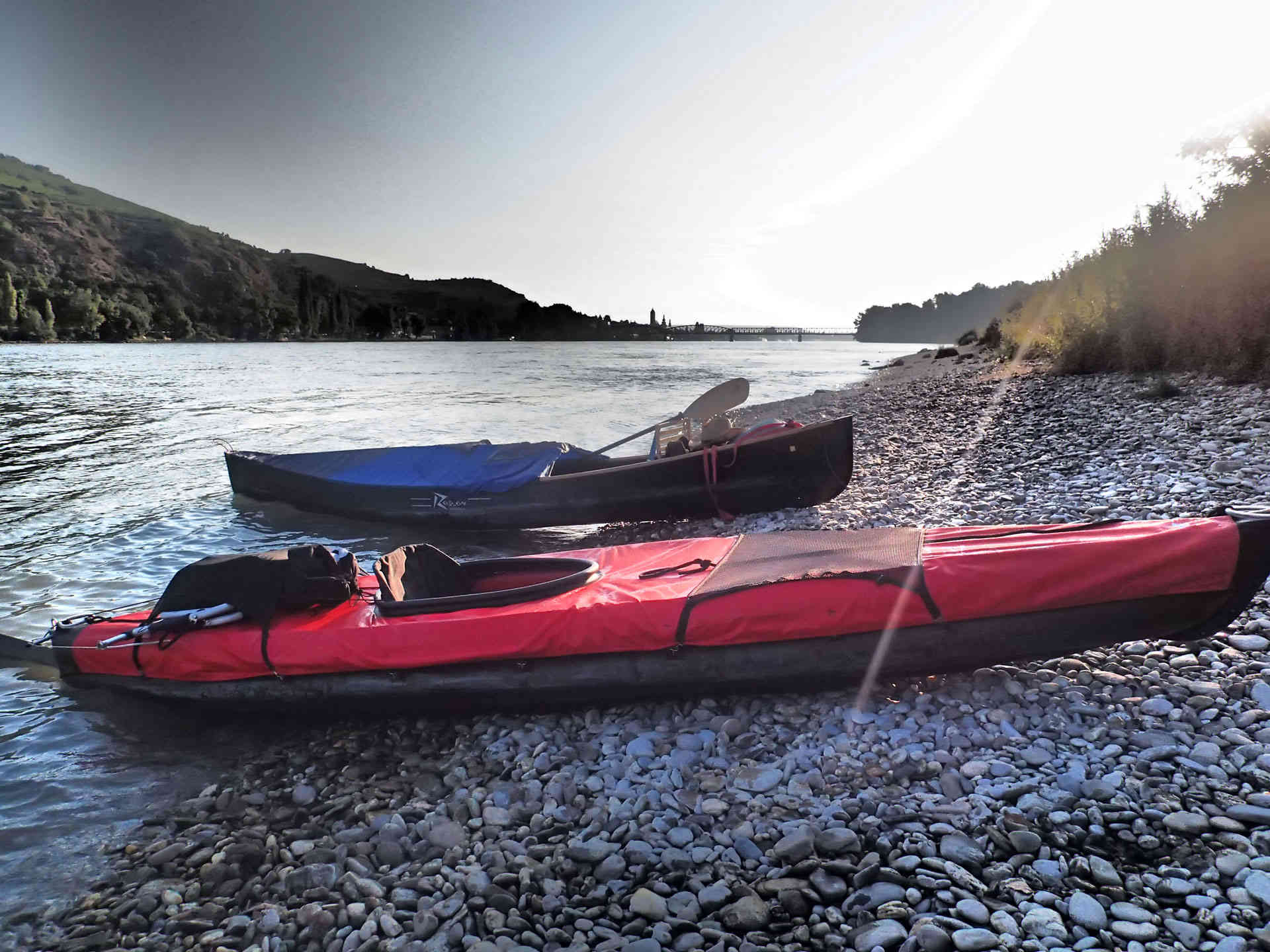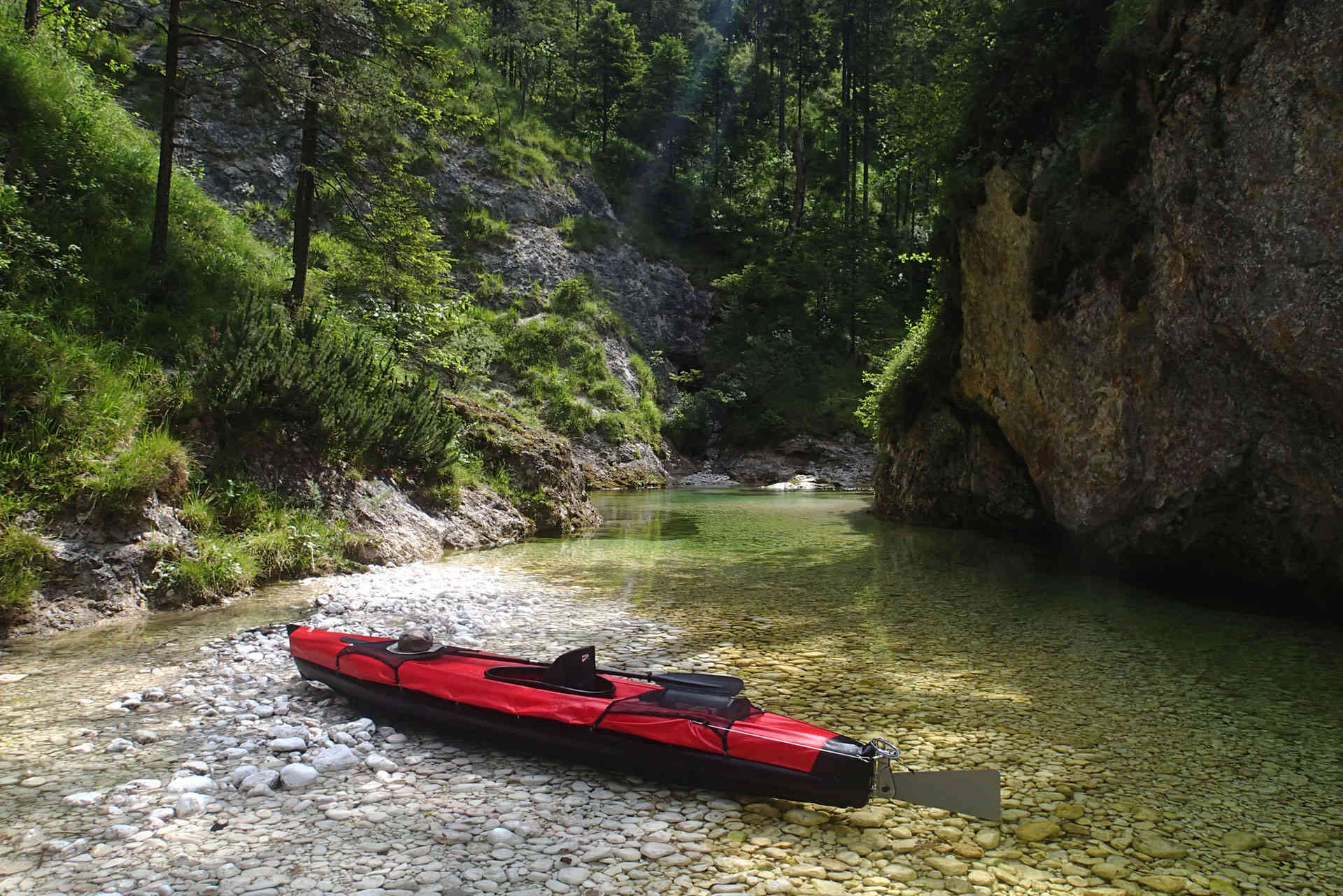 Lightweight dolly for transporting fully inflated kayaks on land. Can be collapsed and taken with you for portages along the way.