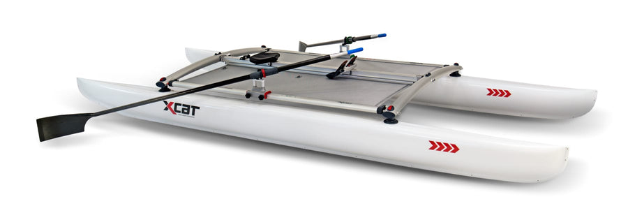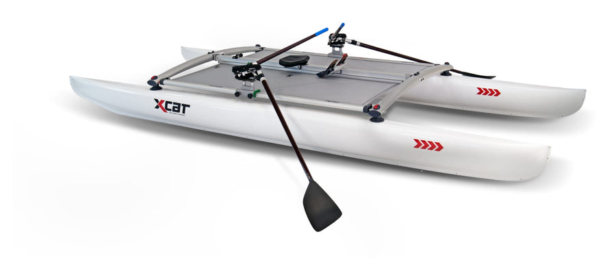 The XCAT RowMotion is a traditional rowing system—available with 2-piece carbon fiber oars—that takes advantage of the catamaran’s stable platform resulting in a safe, comfortable ride. The XCAT RowMotion comes outfitted with Concept2 oarlocks which allows you to use your own oars if you’d like!