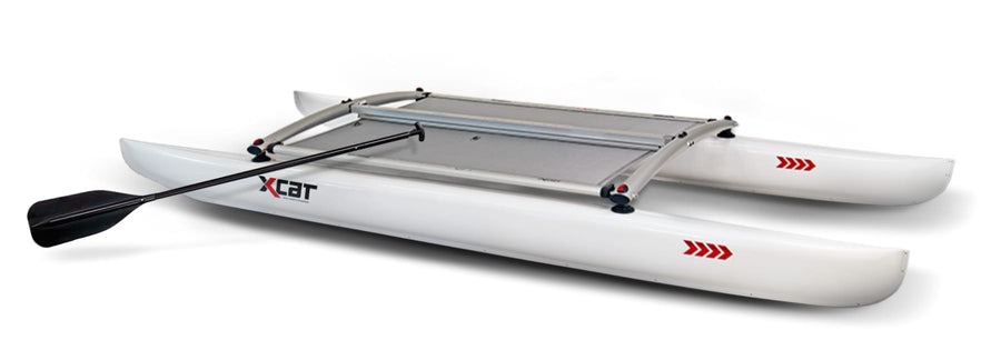 The XCat SUP lets you stand up and paddle for fitness or fun. The catamaran stability, coupled with the optional tiller-fix accessory helps keep you on track whether you paddle alone or with a friend.